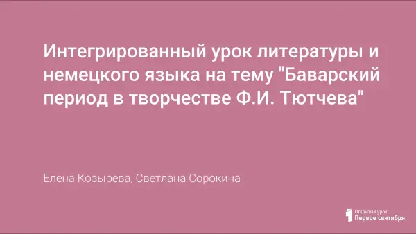Урок является совместным творчеством и опытом работы учителей русского и немецкого языков, посвящен периоду жизни и творчеству великого русского поэта Ф.И. Тютчева в Баварии.
