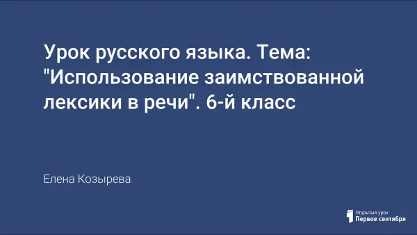 Открытый урок русского языка "Использование заимствованной лексики в речи" обобщает пройденный материал по теме "Заимствованная лексика", содержит презентацию по теме, обобщающие и закрепляющие материалы, творческие задания, развивающие речь учащихся и индивидуальную способность к литературному творчеству.