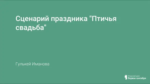 Птичья свадьба – необычная традиция празднования прилета птиц весной. Празднуется 25 января. В этот день дети наряжаются птицами и поют народную песню «Птичья свадьба», которая известна еще с XV века. Предлагается сценарий урока.