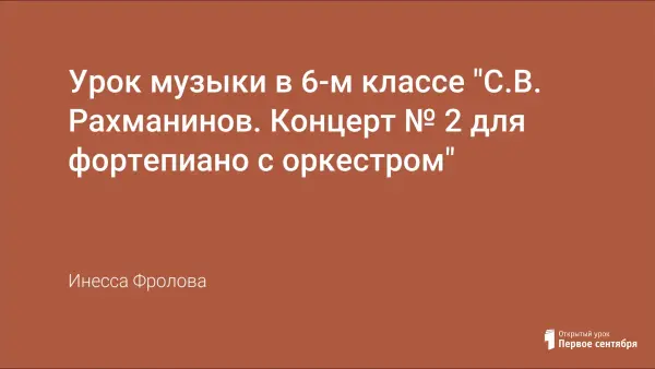 На уроке на примере музыки Концерта № 2 для фортепиано с оркестром С.В. Рахманинова показывается неразделимая связь музыки с жизнью: жизнь рождает музыку, а музыка воздействует на жизнь.