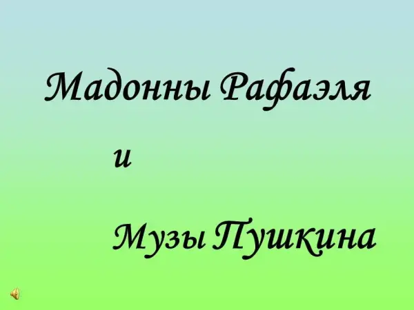 Данная презентация является неотъемлемой частью урока-альбома по литературе и искусству «Мадонны Рафаэля и Музы Пушкина», проводимого в старших классах. Двух гениев мировой культуры, Рафаэля и Пушкина, объединяет то, что чувствовали эти два мастера живописи и литературы к женщине: любовь, преклонение, обожествление. Их творчество и по сей день оценивается как непостижимое и непревзойденное совершенство, прикоснуться к которому позволяет предложенная презентация и материалы урока.