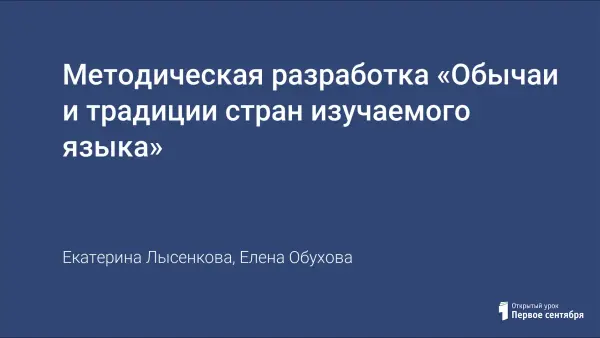 Методическая разработка «Обычаи и традиции стран изучаемого языка»