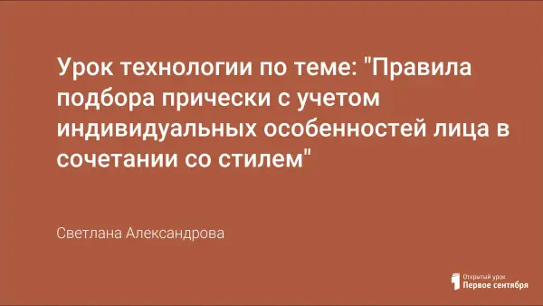 На данном уроке учащиеся обобщают, систематизируют и проверяют теоретические знания по теме «Моделирование по типам лиц», повторяют основные стили причесок и типы лиц. Отрабатывают на практике правила подбора прически к определенному типу лица в сочетании со стилем.