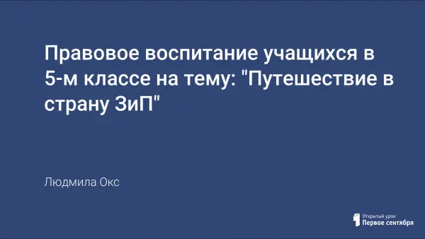 Правовое воспитание учащихся в 5-м классе на тему: "Путешествие в страну ЗиП"