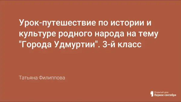 Цель урока: познакомить учащихся с историей образования городов Удмуртии, их современным обликом. Создать необходимые условия для становления национального самосознания, воспитания чувств патриотизма, уважения к людям, гордости за успехи своего народа.