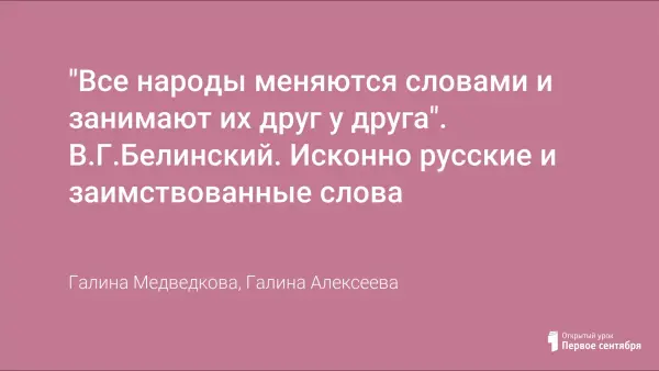 "Все народы меняются словами и занимают их друг у друга". В.Г.Белинский. Исконно русские и заимствованные слова