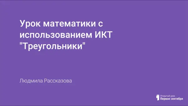 Основной целью урока является знакомство с видами треугольников и повторение понятия об углах. На уроке использована презентация, в которой учащиеся сами расставляют углы и треугольники согласно названиям. Остальная часть презентации используется для наглядности. Урок направлен на воспитание толерантности и воспитание интереса к изучению математики.