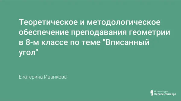 В работе представлено теоретическое и методологическое обеспечение преподавания геометрии в 8-м классе по теме "Вписанный угол".