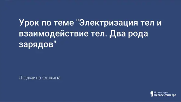 Урок формирует первоначальные представления об электрическом заряде, взаимодействии заряженных тел, существовании двух видов электрических зарядов. Учащиеся выясняют сущность процесса электризации тел, учатся решать качественные задачи по теме. Знакомятся с краткими историческими сведениями изучения электрических зарядов.