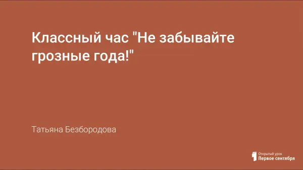 Классный час подготовлен к годовщине разгрома немецко-фашистских захватчиков под Сталинградом. Данный классный час является первым в цикле, посвящённом битве на Волге. Проходит он в форме заочной экскурсии по городу-герою.