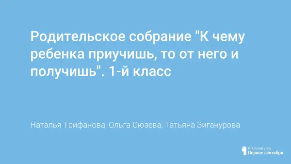 Родительское собрание "К чему ребенка приучишь, то от него и получишь". 1-й класс