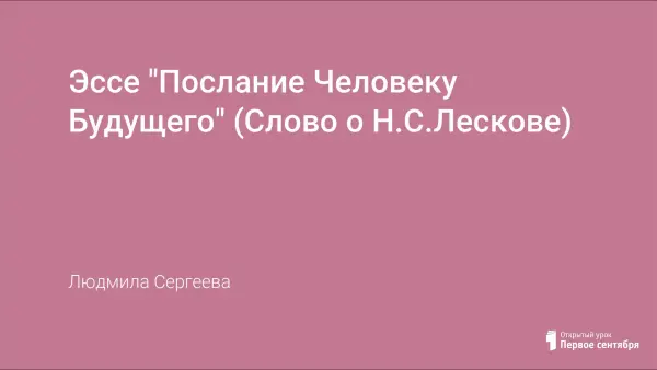 А понимаем ли мы смысл посланий, которые оставил нам Н.С.Лесков? Как стать таким внимательным читателем, чтобы открыть для души своей мудрое Слово Н.С.Лескова? Открыть как русское чудо, посланное Всевышним. Произведения этого удивительнейшего писателя и человека надо принимать так, чтобы душа проснулась и стала той благодатной почвой, в которую бы упали зерна добра и правды, дав свои прекрасные всходы. Как донести до каждого мысль: он вечен, потому что дает надежду на будущее обновление страны, веру в неиссякаемые силы русского народа!? Это все вопросы – утверждения, волнующие душу мою…