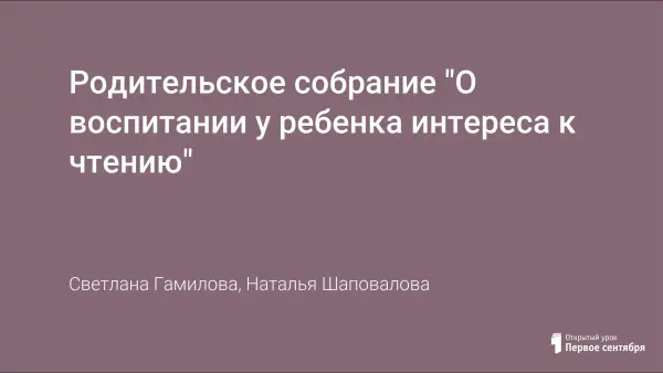 Родительское собрание "О воспитании у ребенка интереса к чтению"