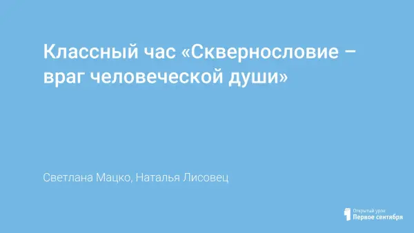 В ходе мероприятия рассмотрены духовные корни матерных слов, их влияние на воду, эксперименты с семенами растений. Классный час доказывает подросткам, что матерная брань – это духовная болезнь человека. Цель: заинтересовать студентов духовным поиском, направить их в русло добра, любви, человечности, скромности и деликатности; ориентировать на общечеловеческие ценности; развивать речь.