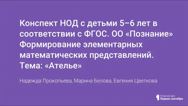 Конспект НОД с детьми 5–6 лет в соответствии с ФГОС. ОО «Познание» Формирование элементарных математических представлений. Тема: «Ателье»