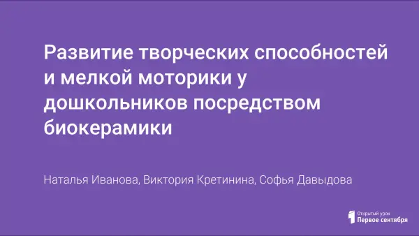 Развитие мелкой моторики - одна из актуальных проблем при поступлении ребенка в школу. Обычно дети, имеющие высокий уровень развития мелкой моторики, умеют логически рассуждать, у них достаточно развита память, внимание и связная речь. В работе с дошкольниками используется оригинальный вид декоративно-прикладного искусства - лепка из солёного теста, которая называется биокерамикой или тестопластикой.