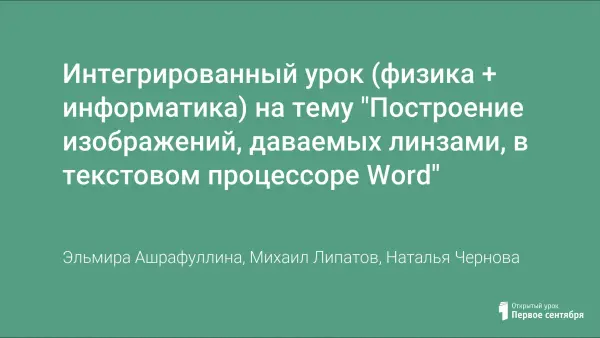 Интегрированный урок (физика + информатика) на тему "Построение изображений, даваемых линзами, в текстовом процессоре Word"