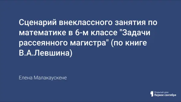 Представлен сценарий внеклассного занятия по математике в 6-м классе "Задачи рассеянного магистра".