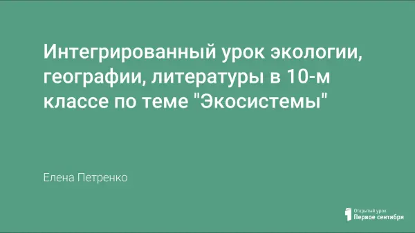 Данный обобщающий урок ставит своими целями: обобщить и углубить знания обучающихся об экосистеме как едином природном комплексе, в котором живые и косные компоненты связаны между собой обменом веществ и энергии; развивать творческие способности и мышление учащихся; формировать навыки исследовательской деятельности.