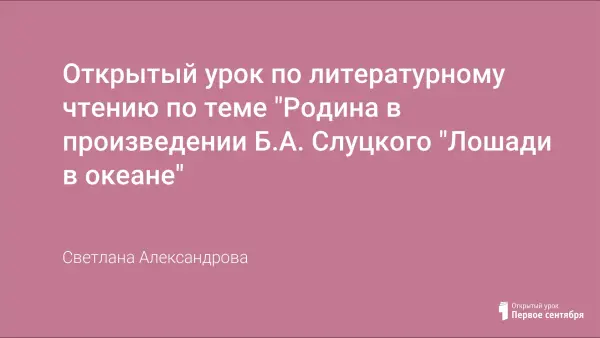 Произведение Б.А. Слуцкого «Лошади в океане» посвящено событиям Великой Отечественной войны. Анализируя стихотворение, учитель доводит до сознания учащихся, что война – зло, которое не должно повториться.