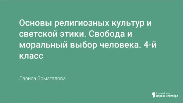 Цель урока: формирование представлений о свободе и моральном выборе человека, моральном конфликте.