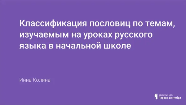 Классификация пословиц по темам, изучаемым на уроках русского языка в начальной школе