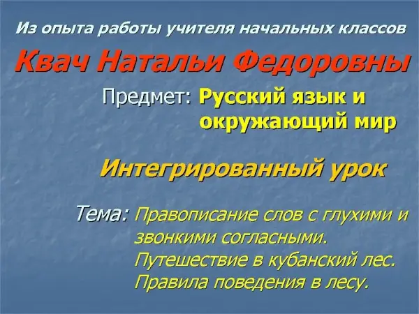 Урок развивает навыки правописания слов с глухими и звонкими согласными и гуманного отношения к природе. Разработка направлена на новые результаты обучения, формирование межпредметных связей, создание здоровьесберегающих технологий образовательной деятельности учителя и учащихся.