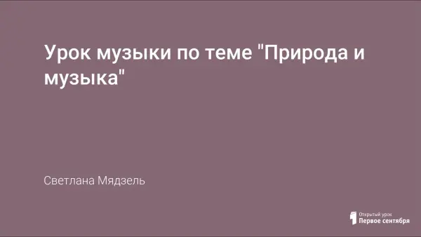 Цель данной работы: раскрыть прекрасный мир природы языком музыки, вызвать эмоциональный отклик на прослушанные произведения музыки, воспитывать через музыку любовь к природе родного края.
