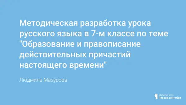Повторение материала проводится по картинкам из компьютерной презентации Проводится выборочный диктант: читается текст по картине В. Поленова "Заросший пруд", а учащиеся выписывают причастные обороты. Затем дана творческая работа по картине В. Поленова "Золотая осень": придумать 3-4 предложения или текст-описание с причастиями.