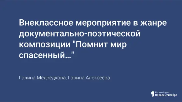 Внеклассное мероприятие в жанре документально-поэтической композиции "Помнит мир спасенный…"