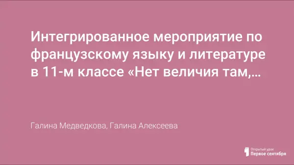 Интегрированное мероприятие по французскому языку и литературе в 11-м классе «Нет величия там, где нет простоты, добра и правды…» (к 200 летию со дня Отечественной войны 1812 года)