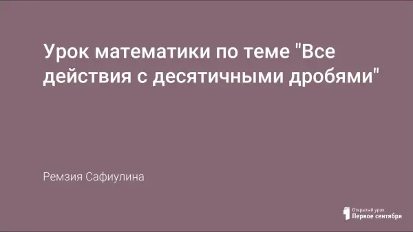 На уроке повторяются все действия с десятичными дробями: сравнение, вычитание, умножение и деление. Учащиеся повторяют правила, выполняют устные и письменные упражнения. Кроме того, учащиеся работают на компьютере индивидуально, выполняя тесты.