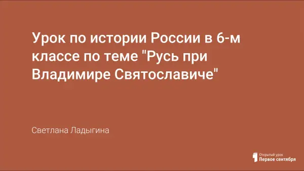 На уроке учащиеся исследуют особенности развития Руси в период правления князя Владимира. Используется презентация. Организация работы в классе – групповая. Особенность урока - постоянный диалог учителя и учеников, основанный на вопросах, подобранных к текстам.