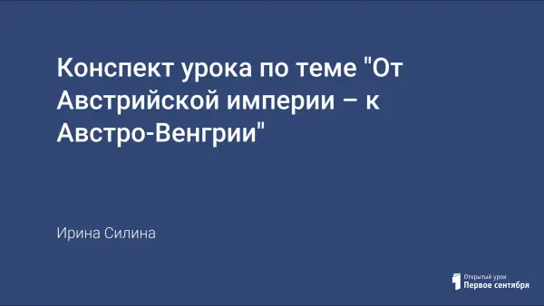 Представленная в статье тема урока, посвященная становлению и развитию Австро-Венгерской империи, является одной из самых сложных в плане преподавания. Разработка урока в форме викторины позволяет решить ряд дидактических и методических задач.