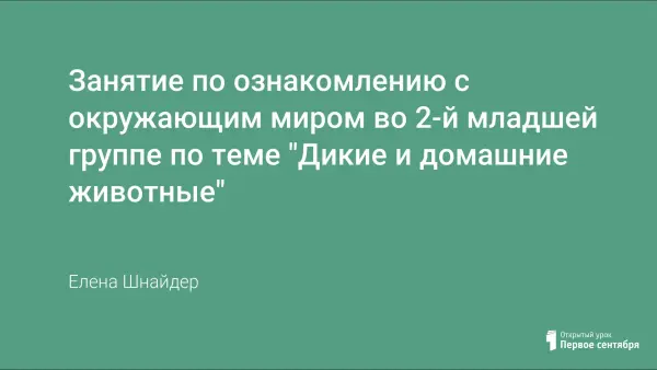 Урок является обобщающим после цикла занятий по ознакомлению детей младшего дошкольного возраста с обитателями леса и животными, живущими рядом с человеком. Целью занятия является закрепление знаний детей младшего дошкольного возраста о диких и домашних животных. Форма проведения – путешествие.