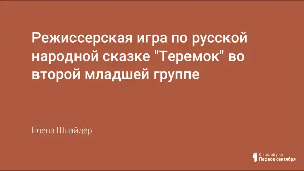 Занятие составлено по программе «Развитие» Л.А. Венгера, раздел «Режиссерская игра». Во время игры дети учатся ролевому поведению, становятся актерами, разыгрывая простые кумулятивные сказки. Целью является разыгрывание с детьми знакомой сказки «Теремок». Данная форма проведения занятия способствует субъект-субъектному взаимодействию с детьми.