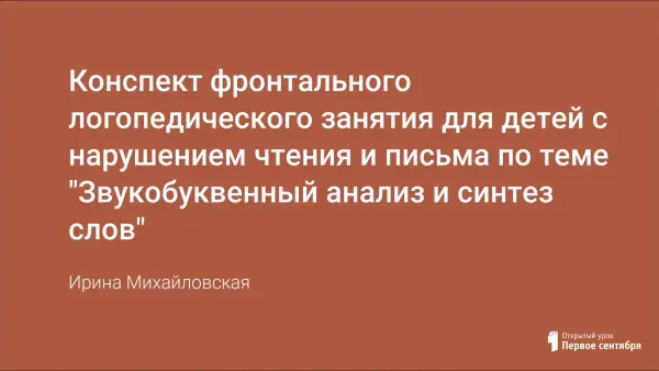 Конспект фронтального логопедического занятия для детей с нарушением чтения и письма по теме "Звукобуквенный анализ и синтез слов"