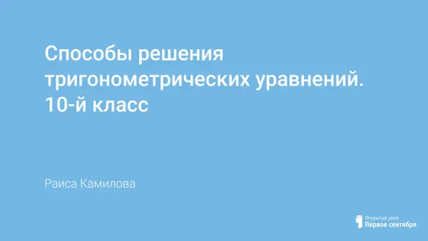 На двух уроках идет изучение новой темы, где разбирается 13 тригонометрических уравнений и 5 решается самими учащимися. Учащиеся имеют возможность познакомиться с десятью способами решения тригонометрических уравнений. Первый урок ведется самими учащимися. Второй урок проводится учителем как урок-лекция. Учащиеся за годы учебы в 10–11-х классах должны привыкнуть и к такой форме проведения урока, так как в дальнейшем это облегчит им обучение в вузах.