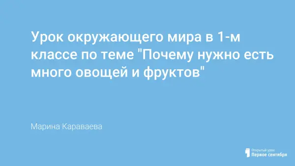 Вашему вниманию предлагается урок, основные задачи которого – сформировать у детей представление о витаминах, раскрыть их значение для здоровья человека.