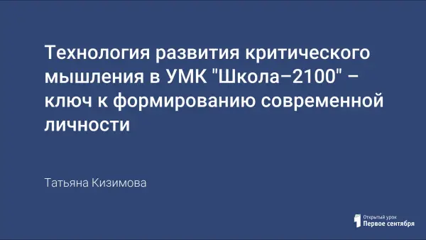Сегодня перед учителем начальных классов стоит сложная методическая задача – формировать личность способную к самосовершенствованию, саморазвитию, самореализации. Личность, готовую использовать усвоенные знания, умения и способы деятельности в реальной жизни для решения практических задач и жизненно значимых ситуаций. Комбинаторность в реализации технологии критического мышления в УМК "Школа–2100" становится средством подготовки личности к жизни в обществе.