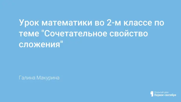 Занятие ставит целью через проблемную ситуацию ввести сочетательное свойство сложения, научиться пользоваться поместительным и сочетательным свойствами сложения для рациональных вычислений.