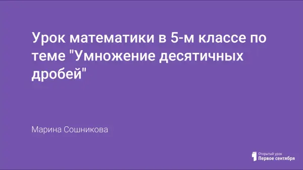 Урок является обобщающим в разделе "Умножение десятичных дробей". Пользуясь изученными ранее свойствами умножения натуральных чисел, учащиеся применяют их в действиях с десятичными дробями. В ходе работы над формированием навыка выполнять умножение десятичных дробей закрепляются ранее изученные темы нахождения площади параллелепипеда, решения уравнений.