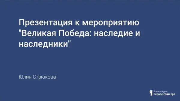 Представлена презентация к мероприятию "Великая Победа: наследие и наследники".