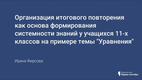 В данной работе представлена организация итогового повторения по теме «Уравнения», которая входит в раздел «Повторение» в 11-м классе. Тематическое планирование поможет учителю математики спланировать свою работу, а элементы урока в виде презентации MS PowerPoint придадут повторению материала наглядность.