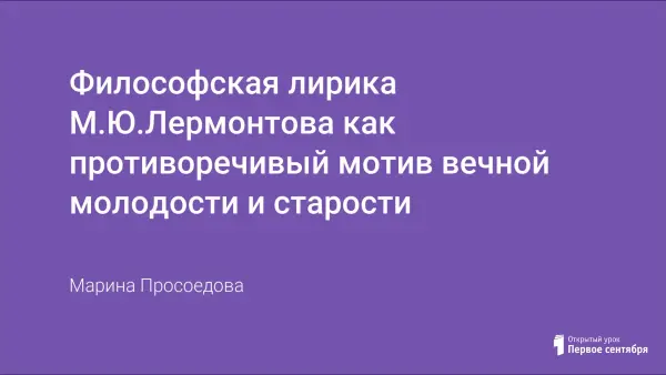 Урок литературы в 9-м классе построен в соответствии с требованиями ФГОС и включает в себя получение новых знаний, закрепление изученного материала в развитии навыков в практической работе с текстом. Цель урока: пробудить интерес учащихся к личности и творчеству М.Ю.Лермонтова; познакомить школьников с мироощущением, идеалами поэта, его нравственным и творческим выбором; представить своеобразие философской лирики М.Ю.Лермонтова как противоречивый мотив вечной молодости и старости.