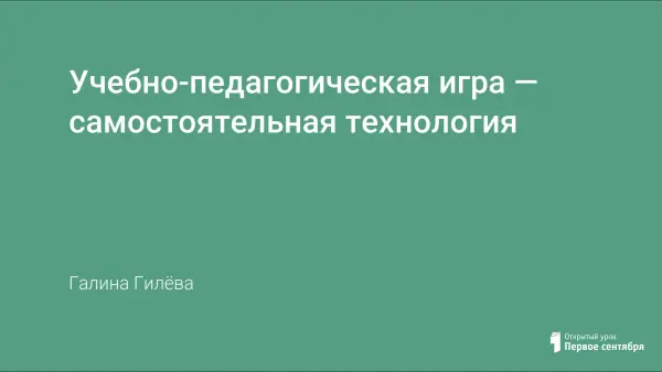 «Учебно-педагогическая игра – самостоятельная технология из опыта работы автора. Игра дает возможность формирования высокой самооценки школьника, без которой невозможно восхождение его личности. Потребности в игре связаны с творческими возможностями личности. Творческие люди активно стремятся к игре, используя для этого любые ситуации.