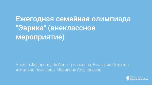 Ежегодная семейная олимпиада "Эврика" (внеклассное мероприятие)