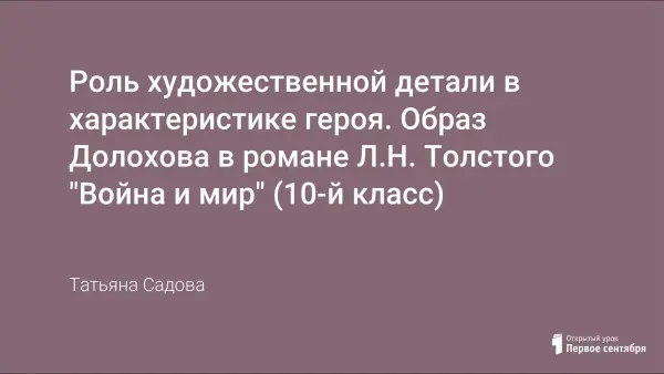Художественная деталь - это одно из средств создания художественного образа, которое помогает представить изображаемую автором картину, предмет или характер в неповторимой индивидуальности. Посмотрим, как это реализуется в романе Л.Н. Толстого "Война и мир" на примере образа Долохова.