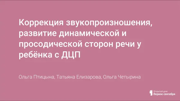 Коррекция звукопроизношения, развитие динамической и просодической сторон речи у ребёнка с ДЦП