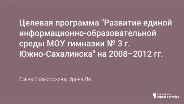 Целевая программа "Развитие единой информационно-образовательной среды МОУ гимназии № 3 г. Южно-Сахалинска" на 2008–2012 гг.